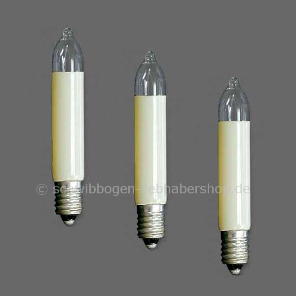 Die Kleinschaftkerzen haben eine Länge von 7 cm, eine Fassung E10 und sind in unterschiedlicher Ausführung/Kerzenanzahl erhältlich.